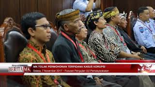 Mahkamah Konstitusi (MK) menolak permohonan yang diajukan oleh sejumlah terpidana tindak pidana korupsi di Lembaga Pemasyarakatan Sukamiskin.